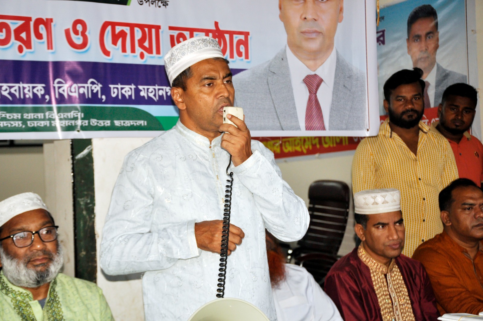 গত পাচ্ছি আজও কষ্ট এ দেশ গণতান্ত্রিকভাবে স্বাধীন হয়েছে দীর্ঘ ১৭ বছর বিএনপির ভারপ্রাপ্ত চেয়ারম্যান তারেক রহমান সারা দেশের মানুষকে বাংলাদেশের মানুষকে ঐক্যবদ্ধ করে একটি সফল আন্দোলনের মাধ্যমে শেখ হাসিনাকে দেশ থেকে পালিয়ে যেতে বাধ্য করেছে শেখ হাসিনা পালিয়েছে কিন্তু কি এখনো তার কিছু প্রেতাত্ম্য দোসর বাংলাদেশের বিভিন্ন জায়গায় রয়েছে যারা এখনো বিভিন্ন সময় অপকর্ম করে যাচ্ছে। দোয়া মাহফিল ও তবারক বিতরণ অনুষ্ঠানে এ সময় আরো উপস্থিত ছিলেন উত্তরা পূর্ব থানা বিএনপির আহবায়ক শাহ আলম,উত্তরা পশ্চিম থানা বিএনপি যুগ্ন আহবায়ক ফ্রিজ আলম ইমাম শরীফ বাবু তুরাগ থানা বিএনপি’র যুগ্ন আহ্বায়ক আলমাস আলী ১ নং ওয়ার্ড বিএনপির সভাপতি আব্দুস সামাদ আজাদ,উত্তরা পূর্ব থানা বিএনপির যুগ্ন আহবায়ক রতন তাহের মৃধা, লুৎফর রহমান,লিয়াকত আলি সহ বিএনপি এবং সহযোগী সংগঠনের নেতৃবৃন্দ।