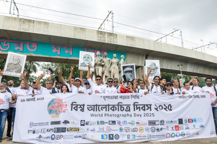 আজ ১৯ শে আগষ্ট রোজ মঙ্গলবার বাংলাদেশ ফটোগ্রাফিক সোসাইটি (বি পি এস) এর উদ্যোগে বাংলাদেশের বিভিন্ন আলোকচিত্র শিক্ষা প্রতিষ্ঠান , সোসাইটি, ক্লাব ও সমমনাদের ৬০ টিরও অধিক সংগঠনের সমন্বয়ে সম্মিলিতভাবে বিশ্ব আলোকচিত্র দিবস-২০২৫ উদযাপন করেছে । সকাল ৯টায় ঢাকা কেন্দ্রীয় শহীদ মিনারে উদ্বোধনী ও পরিবেশনার মধ্যে সংগীত পরিবেশন করেন লালন যাত্রা এছাড়া সুজনের পরিবেশনায় ” প্রেম টু ফ্রেম ” বাংলাদেশ পারফরমেন্স আর্ট গ্রুপ ও সংক্ষিপ্ত আলোচনায় বক্তব্য রাখেন বিপিএস এর সভাপতি মহাসচিব সহ বিশিষ্ট আলোকচিত্র শিল্পী বৃন্দ ও অংশগ্রহণকারী প্রতিনিধি গণ পুরো অনুষ্ঠানটি সঞ্চালনায় ছিলেন শংকর শাওজাল এবং ইমতিয়াজ আলম বেগ, শোভাযাত্রার সূচনায় সকল সংগঠনের নেতৃবৃন্দ ও আলোকচিত্রীদের উপস্থিতিতে শোভাযাত্রাটি কেন্দ্রীয় শহীদ মিনার হতে শুরু হয়ে ঢাকা বিশবিদ্যালয়ের রাজু ভাস্কর্যে সমাপ্ত হয় ।